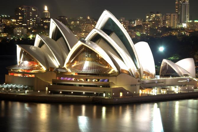 - Opera de Sidney: Sin lugar a dudas el punto de referencia más importante en Sydney y quizás el más importante de toda Australia, el Sydney Opera House es un centro de artes escénicas con una arquitectura impresionante. La Casa de la Ópera es Patrimonio de la Humanidad por la UNESCO. Cada año, el lugar alberga más de 1600 actuaciones, pero a menudo es la arquitectura lo que los turistas acuden a ver. El edificio se encuentra en Bennelong Point, en el puerto de Sydney. Dentro del edificio hay una Sala de Conciertos, Teatro Drama, Teatro Joan Sutherland, Playhouse, Sala Utzon, Studio, Forecourt y un estudio de grabación.